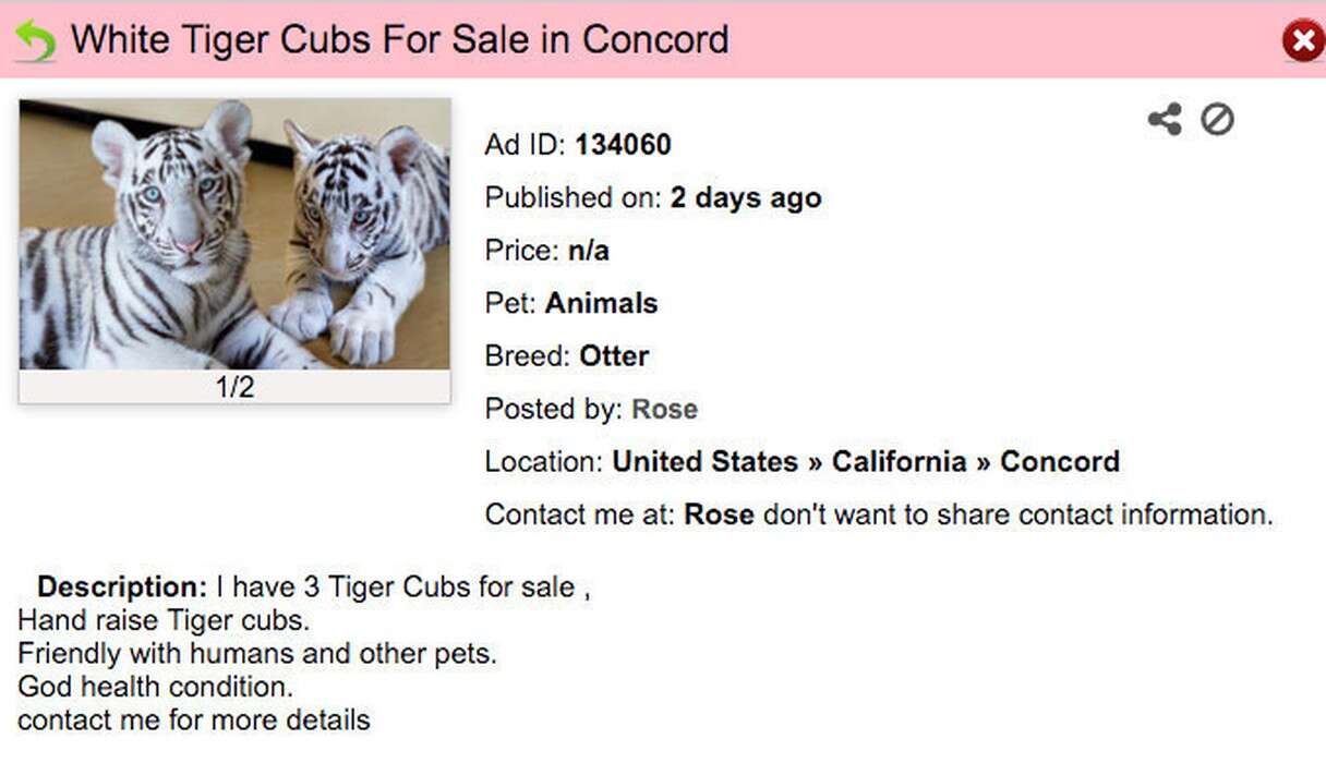 People Are Breeding Tigers And Selling Them As Pets Online The Dodo